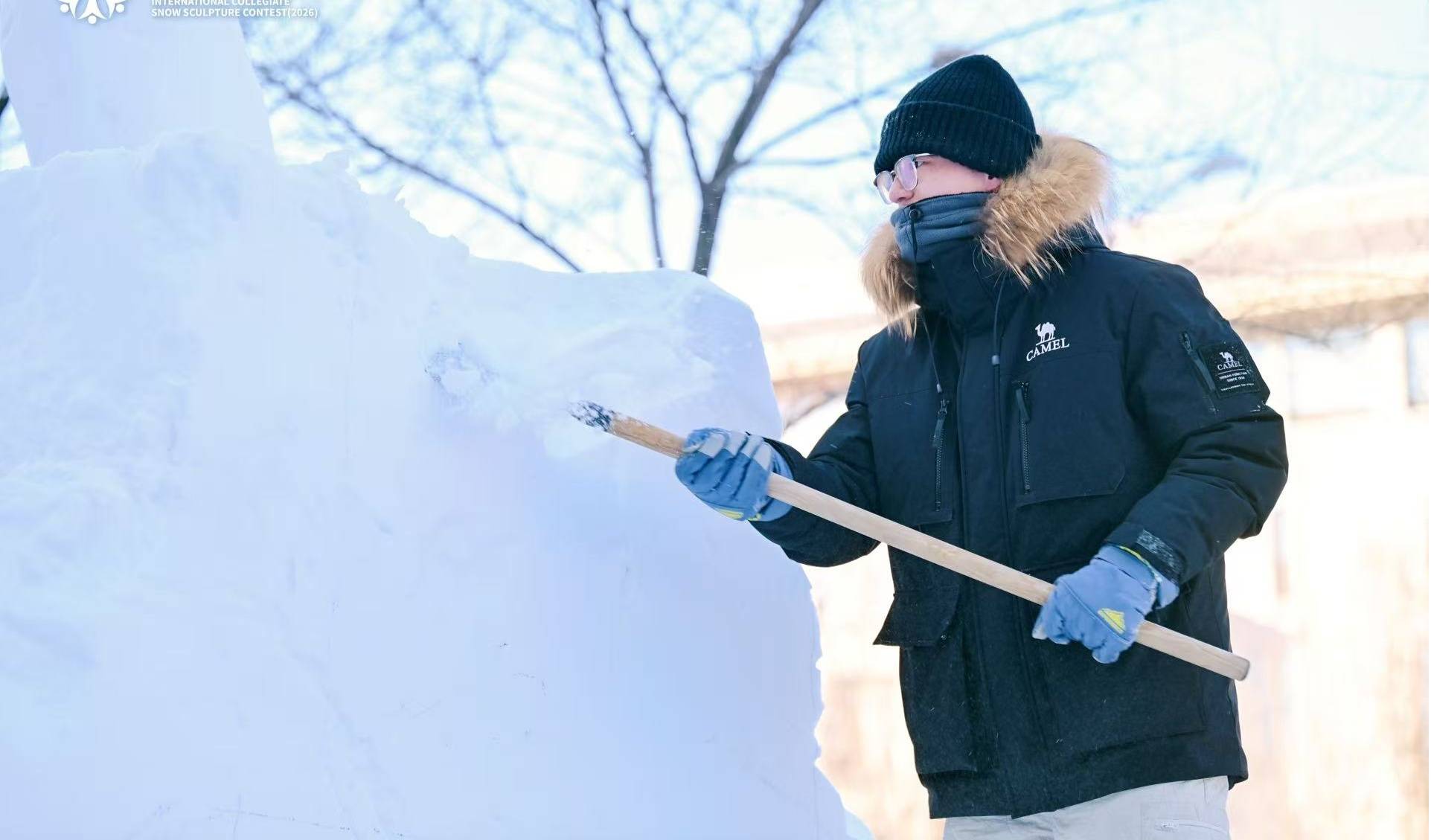 上午8时,大赛正式“开铲”。来自世界各地的青年“雪雕艺术家”齐聚赛场,环绕一方方雪块展开创做。刹那间,铲起雪扬,锯声沙沙,刀尖轻舞,恬静的雪场化做一片热情弥漫的创做海洋。
