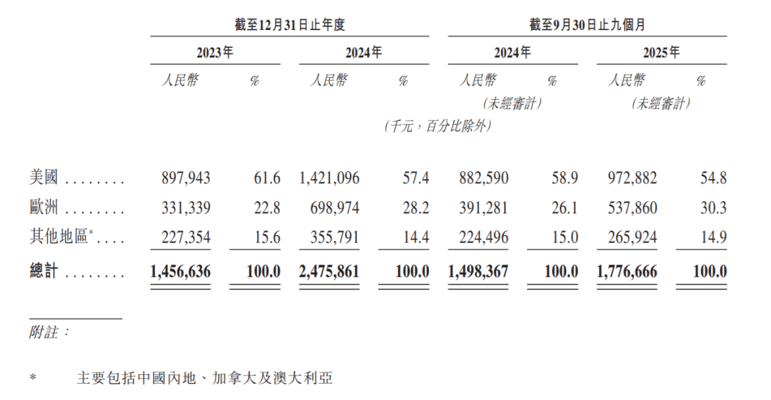 △按照市场地域划分,2025年1-9月,美国市场营收达9。7亿人平易近币,占54。8;欧洲5。3亿,占30。3%;中国内地、、等其它地域2。6亿,占14。9%。中国内地可能10%都不到。